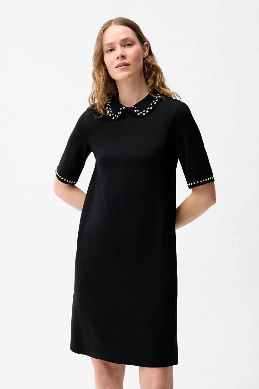 Siyah Yakası taşlı elbise