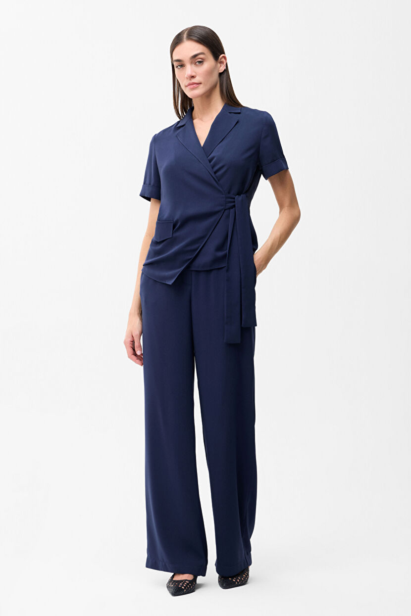 Lacivert Önden Bağlamalı Kruvaze Cepli Ceket