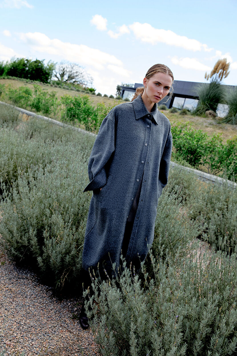 Gri Moda Tutkusu Çıtçıtlı Kaban