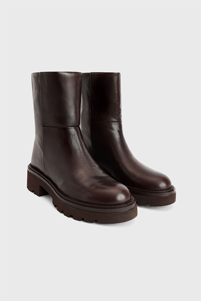 Kahverengi Yuvarlak Burunlu Topuklu Bot