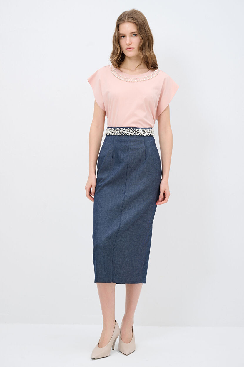 Lacivert Taş Detaylı Etek