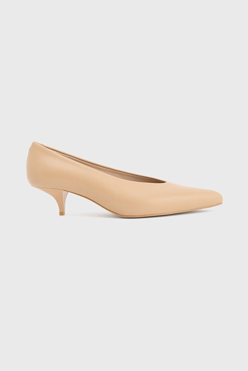 Camel Deri Arkası Açık Topuklu Ayakkabı