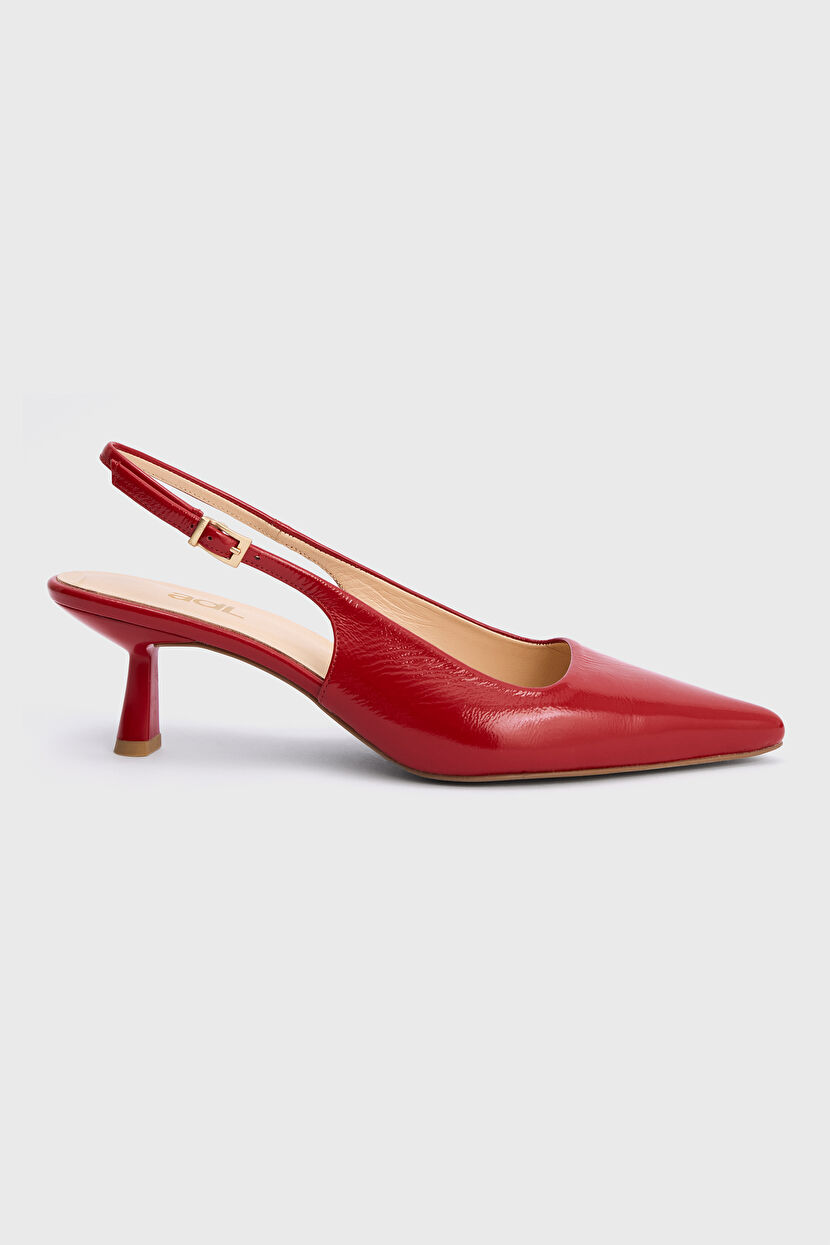 Kırmızı Deri Arkası Açık Topuklu Ayakkabı