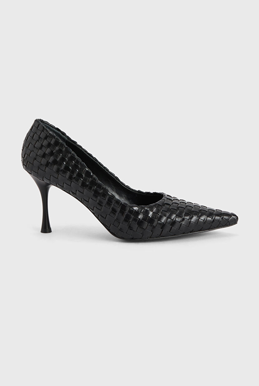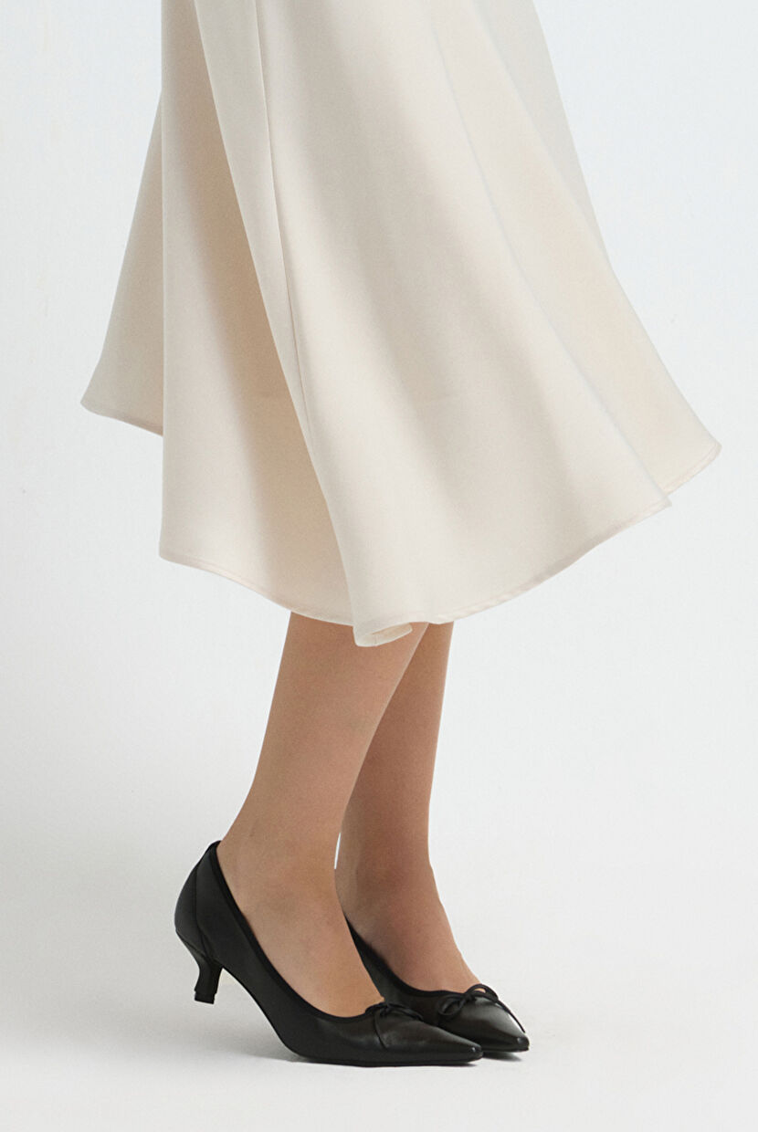 Siyah Deri Arkası Açık Topuklu Ayakkabı