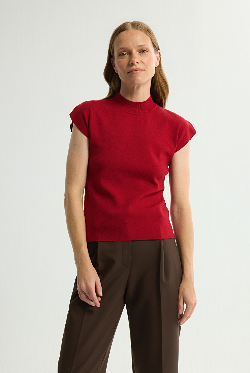 Bordo Boğazlı Kısa Kol Triko Kazak