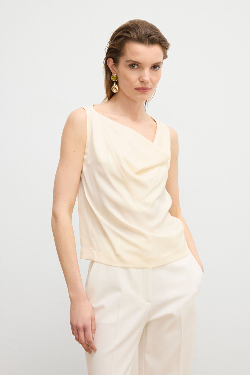Vanilya Degaje Yaka Detaylı Saten Bluz