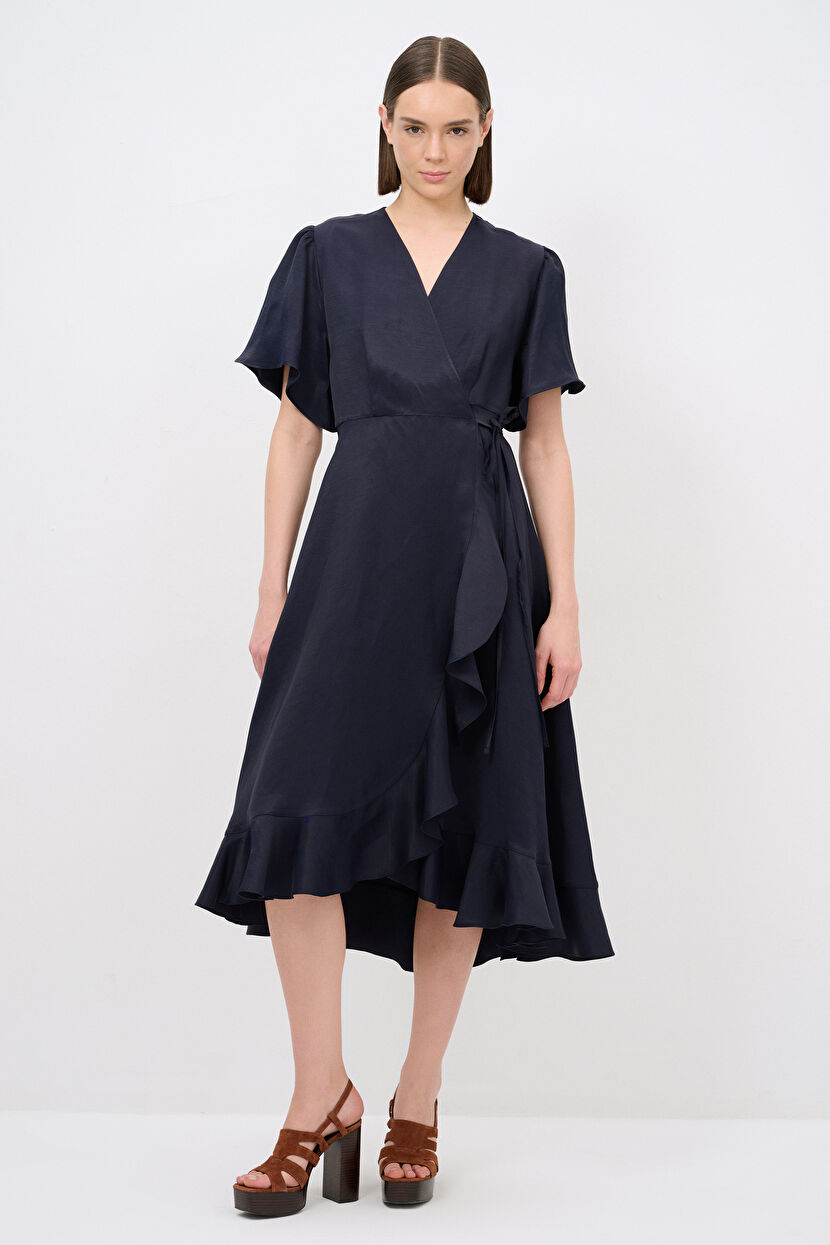 Siyah Moda Tutkusu Drape Detaylı Mini Elbise