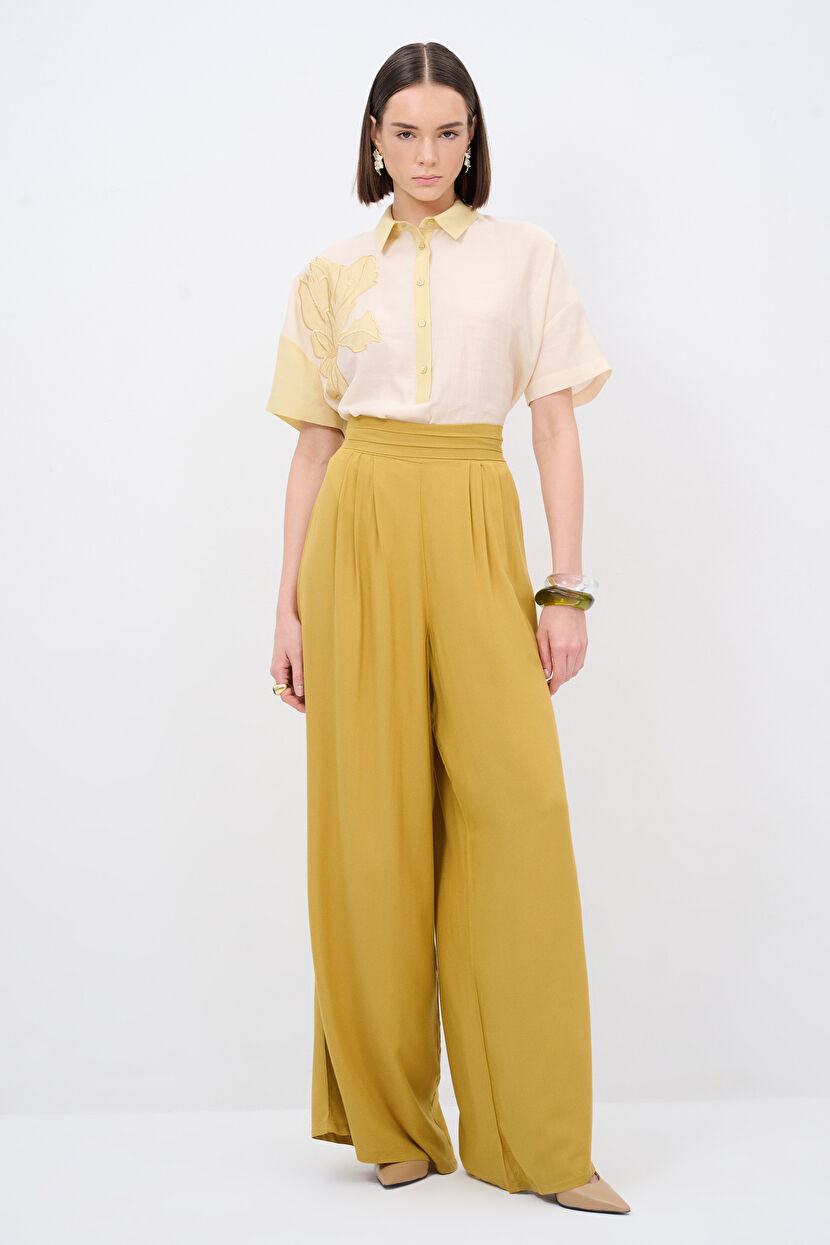 Lacivert Moda Tutkusu Kolsuz Geniş Paça Tulum