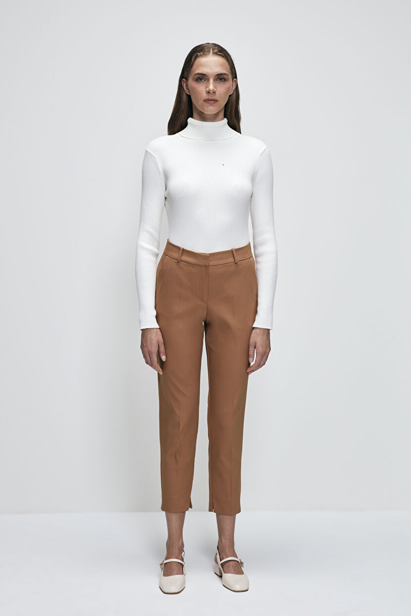Kahverengi Paçası Yırtmaçlı Cepli Pantolon