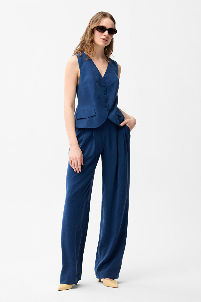 Lacivert Beli Lastikli Pantolon