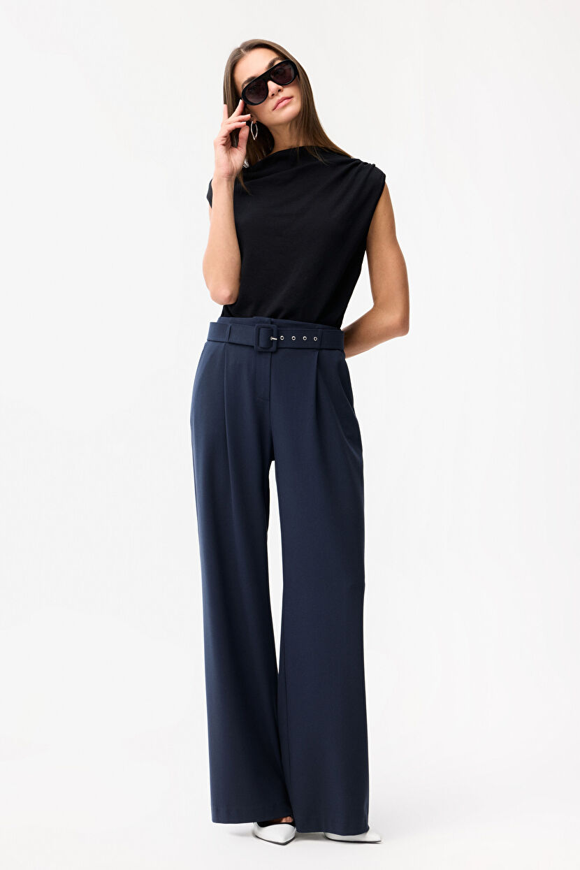Lacivert Yandan Cepli Bol Paça Pantolon