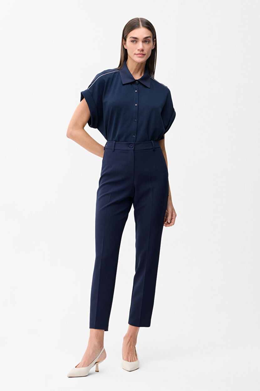 Lacivert Yırtmaç Detaylı Pantolon