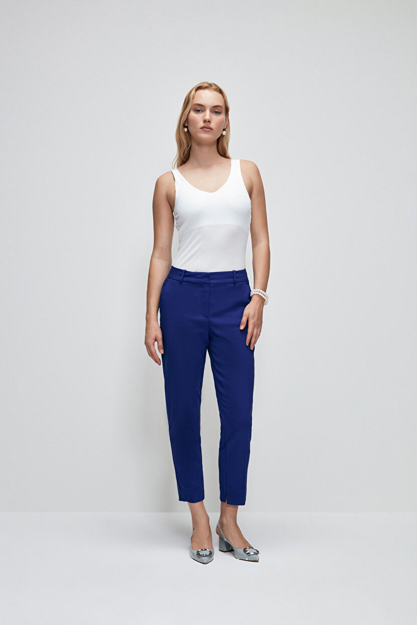 Saks Paçası Yırtmaçlı Cepli Pantolon