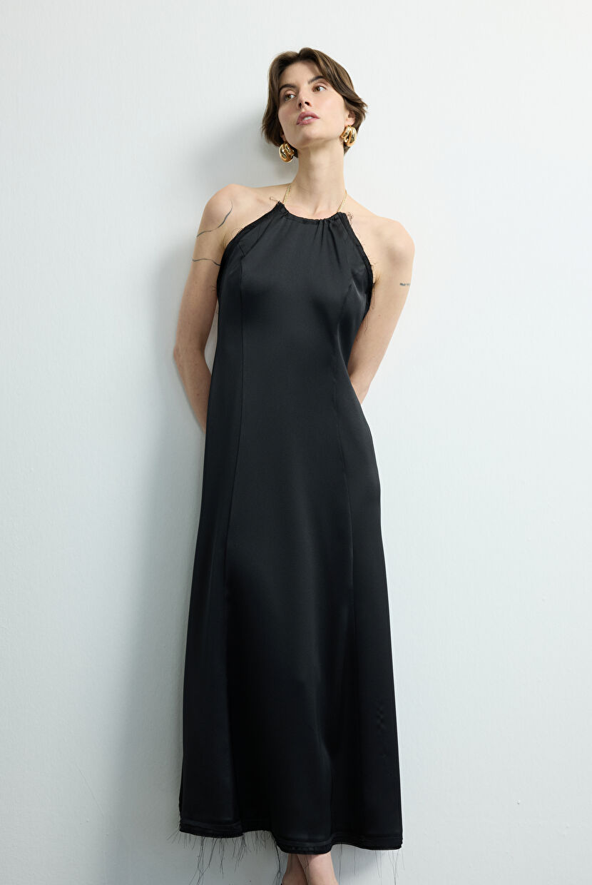 Siyah Sırt Dekolteli Saten Elbise