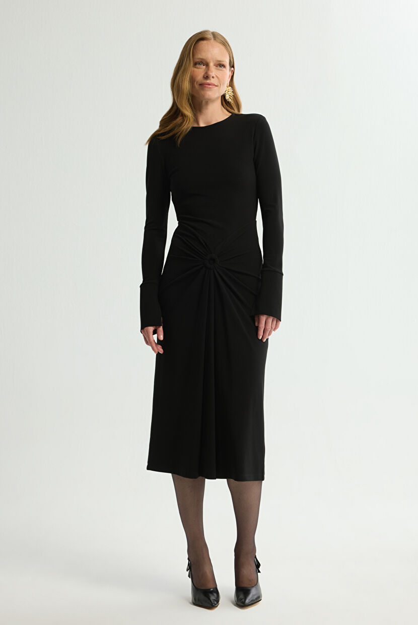 Siyah Düşük Kol Önü Drapeli Elbise 124L9746000-001 | adL