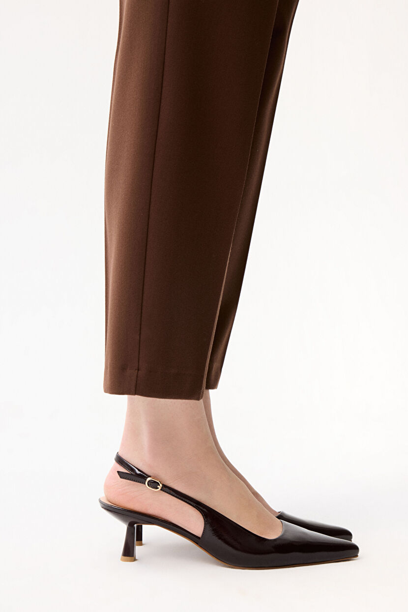 Kahverengi Deri Arkası Açık Ayakkabı