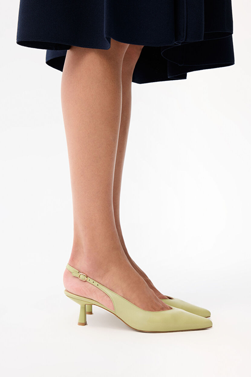 Lime Deri Arkası Açık Küçük Topuklu Ayakkabı