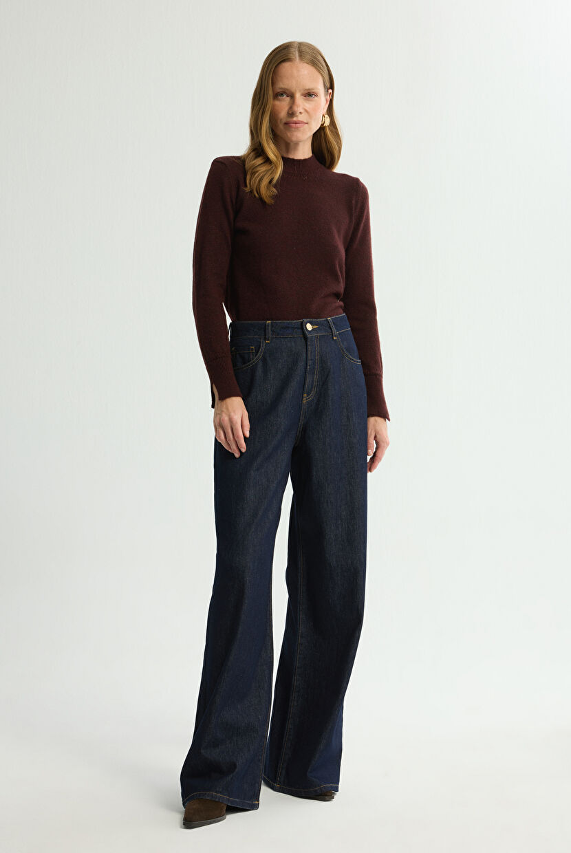 Mürdüm Cepli Geniş Paça Pantolon