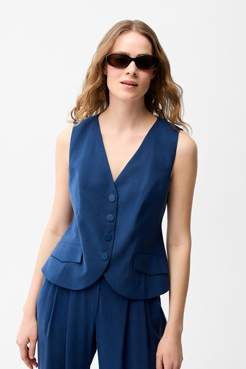 Lacivert V Yaka Yelek
